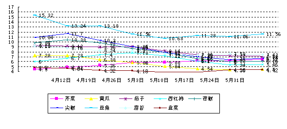 精细菜全区平均价格较5月24日上涨3.25%。其中:芹菜价格6.52元/公斤,较5月24日上涨4.93%;黄瓜价格4.5元/公斤,较5月24日上涨2.74%;西红柿价格5.46元/公斤,较5月24日上涨2.33%;青椒价格6.16元/公斤,较5月24日上涨12.72%;尖椒价格6.74元/公斤,较5月24日上涨4.48%;豆角价格11.56元/公斤,较5月24日上涨4.56%;韭菜价格4.42元/公斤,较5月24日上涨1.43%;茄子价格7.12元/公斤,较5月24日下降1.29%;蒜苔价格7.42元/公斤,较5月24日下降1.91%。