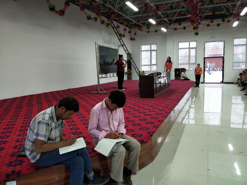 | 村干部认真上夜校,学习国语 |