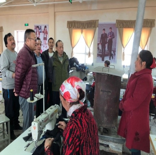 2018年2月28日,自治区发改委朱新祥副主任、产业处吐尔逊江副调研员一行带着关怀带着温暖,来到荒地镇古再勒巴格村走访指导工作,看望慰问“访惠聚”驻村和参加“结亲周”的干部。评审中心赵杰元主任、亚力坤副主任、李亚星村支部书记等领导陪同走访了解情况。先到古再勒巴格村培训就业创业示范基地调研,与参加培训的村民交谈,了解培训进度、培训者技术掌握的情况、销售市场,以及目前存在的问题等。