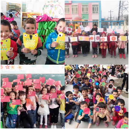 前一阵子,我配合着中国传统文化的主题,让孩子们试着剪窗花。从折纸到画造型,再到剪纸,我给孩子们示范了几种样式后,他们便开始了自己的剪纸之旅。孩子们都很认真的画着、剪着,有的孩子一不小心把纸剪断了,懊恼不已,渴求的小眼神望着我,希望我能再给他一张纸;有的孩子蒙着头,丝毫不受外界干扰;还有的孩子完成剪的工序后,特别小心翼翼地打开作品……他们认真的小样子,真是有趣极了!班里的阿卜杜萨拉木第一个完成了,特别激动地把他的窗花拿到我面前“老师,你看,我剪的,好看吗?”不得不说,他剪的窗花太出乎我的意料了,真的很好看,为此我特别激动地跟幼儿园其他老师炫耀了一下午,那一刻小骄傲溢满了我整个心房。我给他们发了一张硬卡纸,让他们把剪好的窗花贴在卡纸上带回家给爸爸妈妈看,他们高兴极了。
