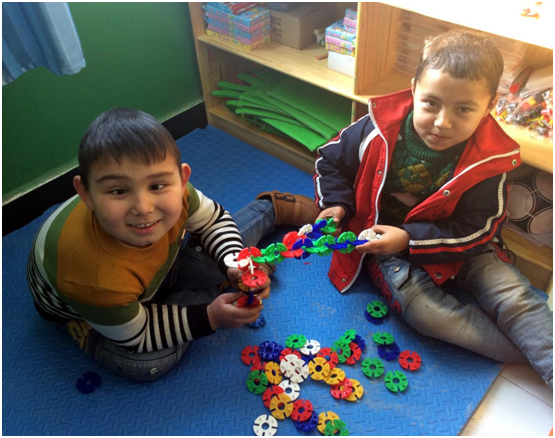 | 阿卜杜热西提跟其他小朋友分享玩具 |