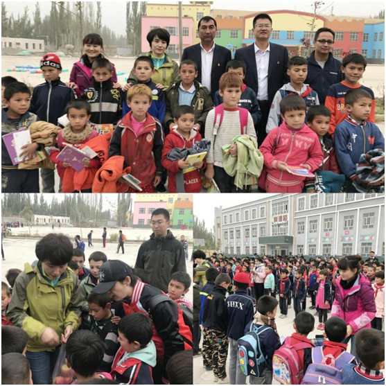 在做好教育教学工作的同时,面对南疆农村双语幼儿园基础设施落后、教育资源匮乏的现状,15名支教老师还利用自己的朋友圈、工作圈来帮助这些孩子们。大家通过微信、QQ等多种方式向社会发起了倡议,号召同事及亲朋好友进行爱心捐助,倡议很快得到了社会各界的积极响应和大力支持。截至2017年12月底,共收到来自各单位及爱心人士捐赠的价值约12万元人民币的文具及生活用品15000余件,并分批次将募集到的物资全部分发到幼儿手中。