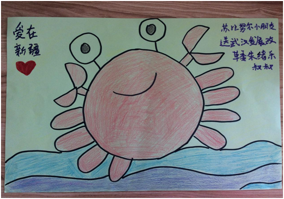 除了跷跷板外,朱绪乐还为若干幼儿购置新衣,在支教老师的指导帮助下,穿上新裙子的苏比努尔小朋友为朱绪乐叔叔画了一幅画表达感谢并寄往武汉。支教老师表示,教育幼儿从小懂得感恩是教师应尽的责任,作画答谢武汉市发展改革委朱绪乐叔叔,不仅可以在孩子幼小心灵里播下感恩的种子,还让孩子们更加深切地体会到无论在哪个省份,无论多远的距离,各民族都要像石榴籽一样紧紧抱在一起。