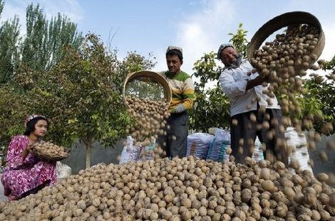 傍晚,阿瓦古丽领了60元工钱,高兴地带着孩子回家去了。当地干部也在热烈讨论着巴旦木、红枣、哈密瓜等新疆其他农产品复制“核桃产业链”的可能性。从“一颗核桃”里,大家看到的是结合地方实际的精准扶贫路径。